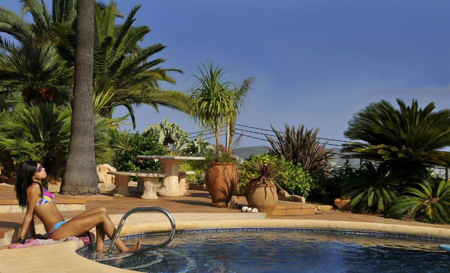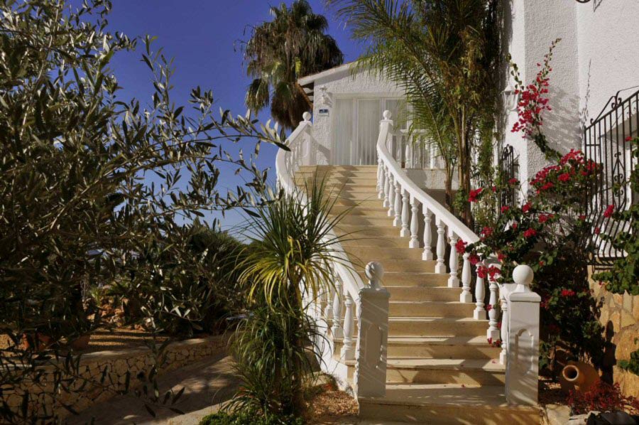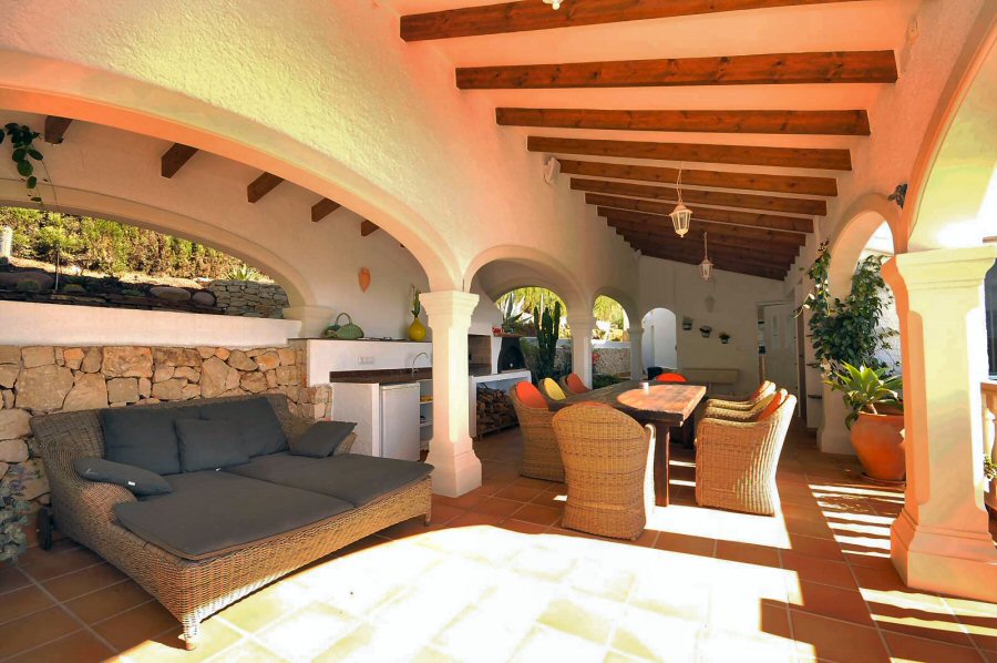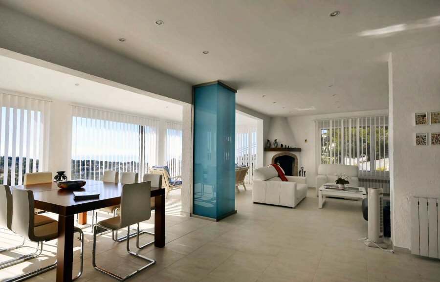 Villa Hüttli disfruta de una vista panorámica, ininterrumpida, de la costa, desde el Cap de Moraira hasta el Penyon de Ifach. Tanto el interior como el exterior fueron diseñados con vistas a deleitarse en este lujo único. La terraza consta de dos niveles, la superior, al mismo nivel que la residencia superior consiste en una naya y un jacuzzi, el inferior tiene la piscina y la terraza solar.